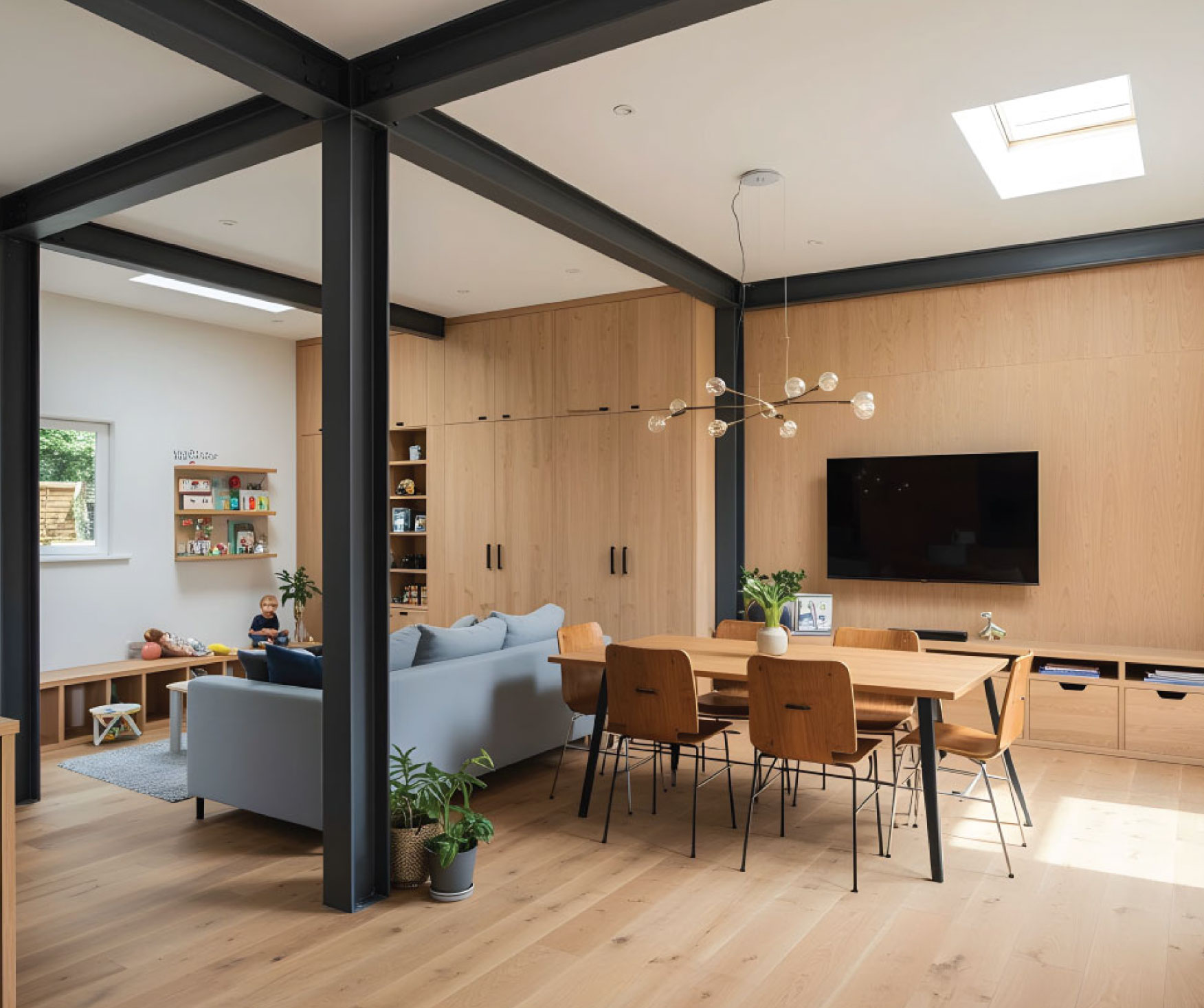 The expansive open-plan living area serves as the family gathering space, featuring abundant natural light and flexible layout options. Designed to accommodate both daily family life and entertaining, with seamless flow to the kitchen and outdoor spaces.